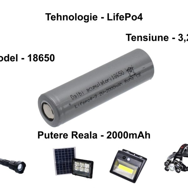 Acumulator LifePo4, Tip 18650, 3.2V, 2000mAh