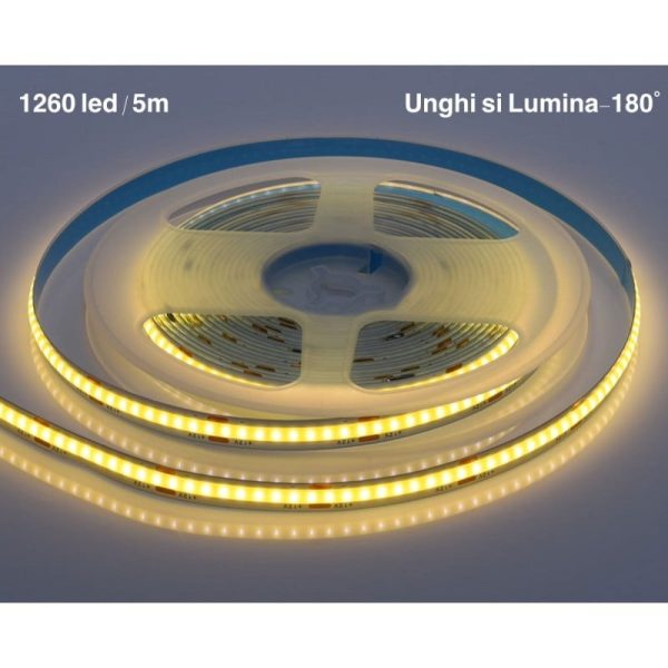Banda Luminoasa COB Led Flexibil, 252 led/m, 12W/m, Rola/5m, Alb-cald