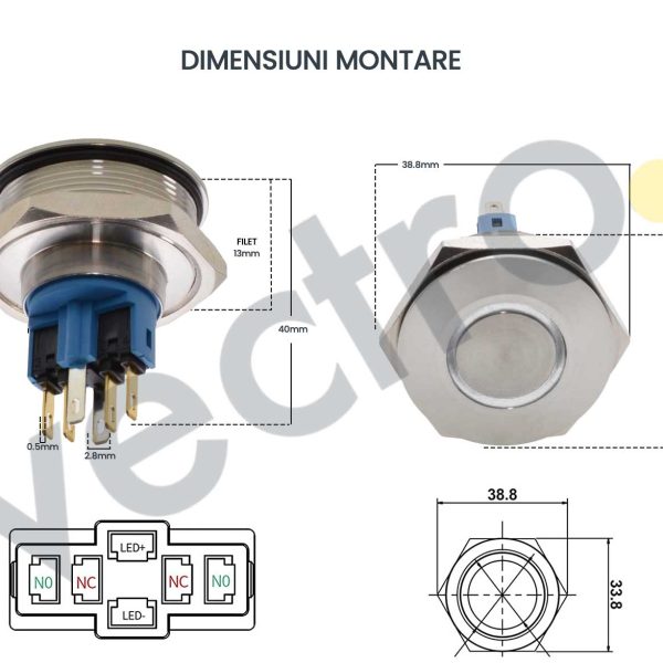 Buton Push 30mm cu Revenire 24V Led Rosu