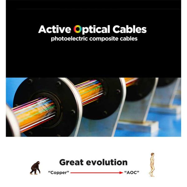 Cablul HDMI optic activ (AOC) este utilizat pentru a conecta o sursă de semnal HDMI la un monitor/televizor situat până la 25 de metri distanță. Cablul acceptă standardul HDMI 2.0 (lățime de bandă de 18 Gbps). Are un diametru mic (4,5 mm) și nu necesită o sursă de alimentare externă (este alimentat de la portul HDMI).