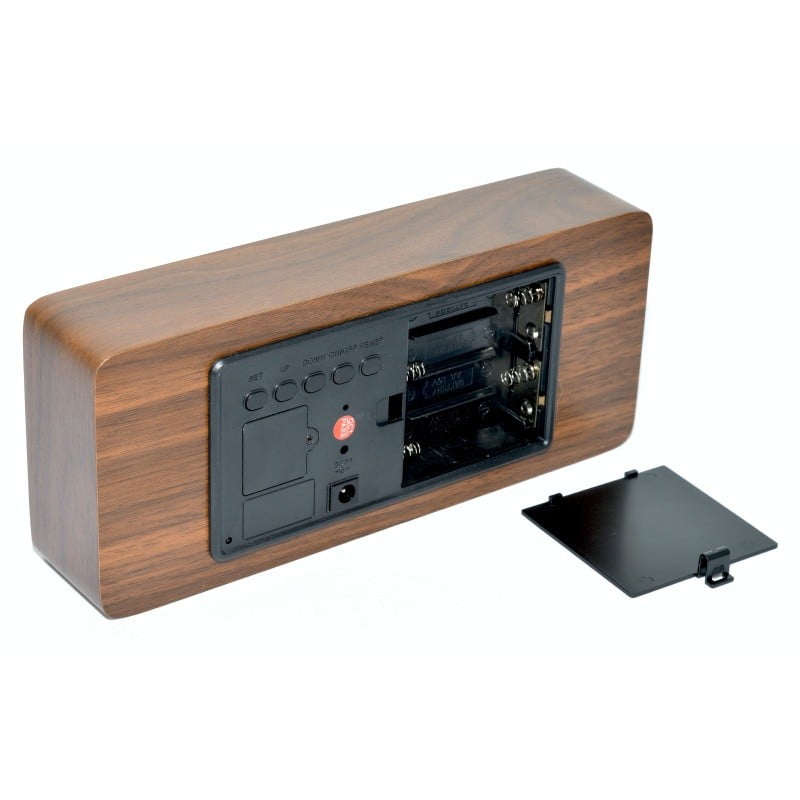 - 1 x Ceas Digital Mare, Lemn Maro, LED Verde