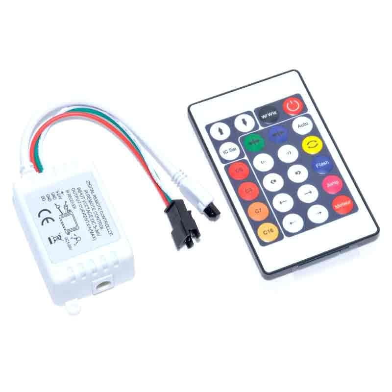 Telecomanda se foloseste cu usurinta, pentru a modifica luminile de la distanta. Aceasta are 24 de butoane si poate controla luminile in numeroase moduri si intensitati.