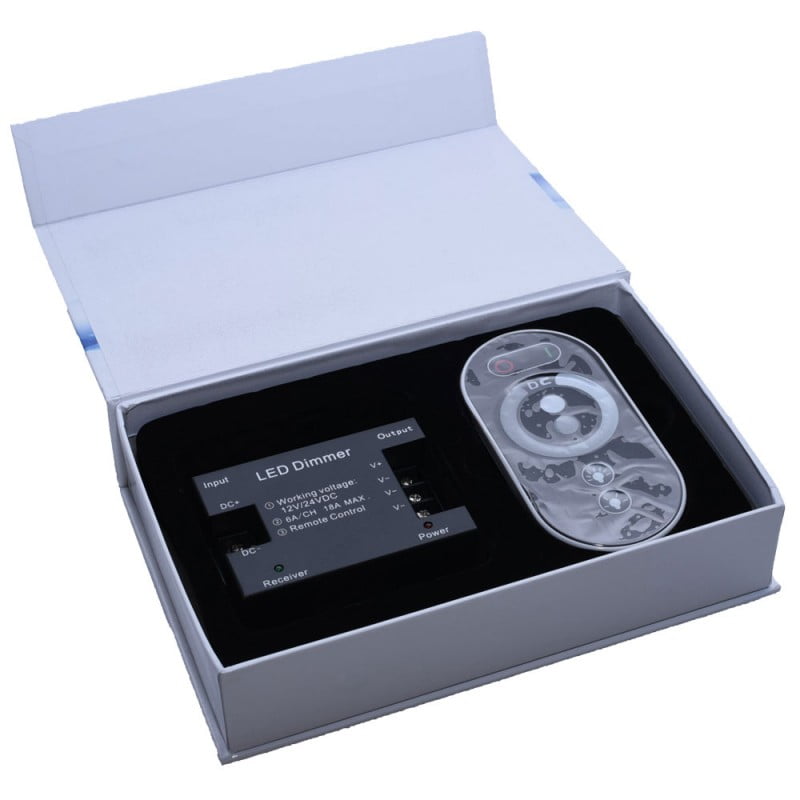 Controler Dimabil pentru banda de led monocroma (o singura culoare), cu telecomanda prin transmisie RF (wireless), pentru un control mai exact.