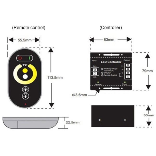 Controler-ul tactil de reglaj al luminii led monocrome este un produs de ultima generație, fabricat cu tehnologie recent dezvoltata. Acesta poate controla lumina în intensitate fără fir, prin tehnologie wireless RF.