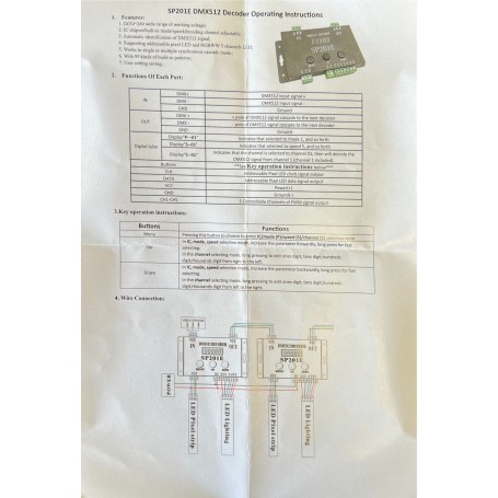 Atunci cand nu se foloseste semnal DMX, acest dispozitiv poate fi utilizat cu semnal SPI si astfel controleaza pana la 1024 Pixeli. Controlerul are pana la 99 de variante dinamice si culori incorporate, cum ar fi: Blit, Stralucire, Estompare, Neteda, Urmarire, Stream, Raspandire, Stroboscop, etc. Viteza si intensitatea sunt de asemenea reglabile.