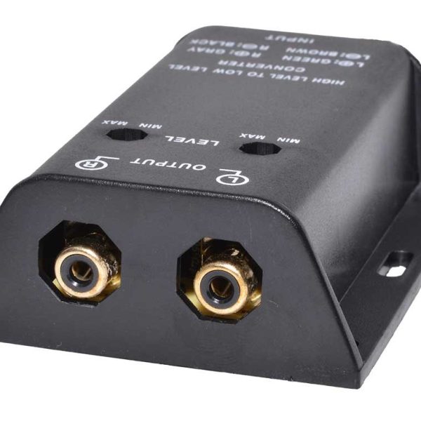 Convertor audio Auto cu 2 iesiri RCA avand reglaj pe fiecare canal ce poate fi folosit la aparatura ce nu are incorporata conectori RCA.