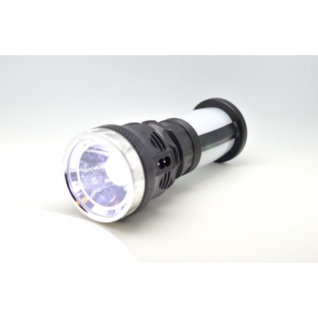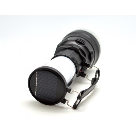 Lanterna are panou fotovoltaic care se incarca din energie solara si este prevazuta cu mufa de incarcare pentru priza cu tensiune de 220V. Lanterna dispune de o capacitate de 1000mAh si are 3 trepte de iluminare. Lanterna este foarte practica in activitati nocturne precum camping, pescuit, vanatoare, drumetii sau diferite actiuni care necesita o lumina eficienta.