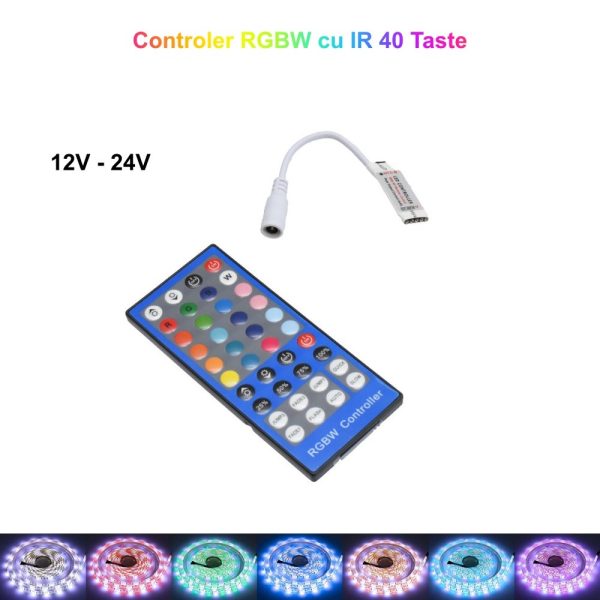Mini controller pentru banda de led RGBW cu telecomanda IR cu 40 de Taste.