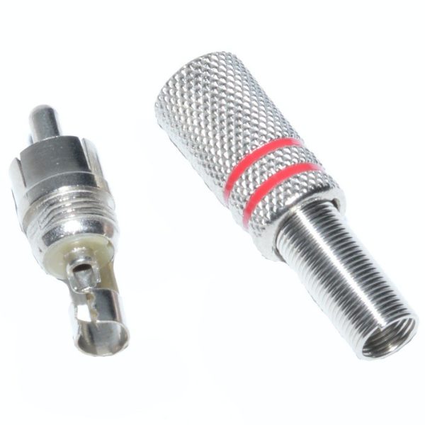 Conector tip Mufa RCA tata de metal cu arc si dunga rosie.