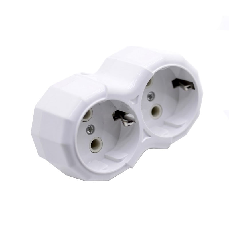 Priza multiplicatoare cu doua posturi de intrare așezate în linie tip Schuko, pentru ștechere cu impamantare. Aceasta are si contacte de protectie din alama pentru siguranta.